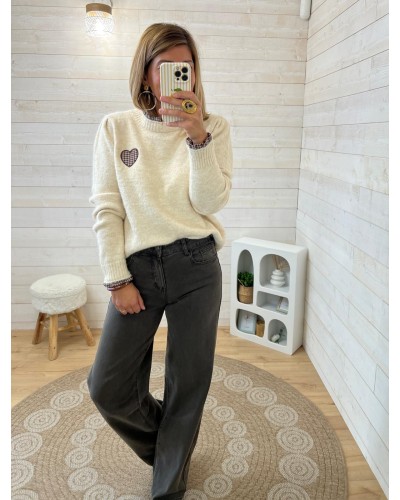 - Coeur vichy marron avec rappel au niveau de l'encolure et des manches