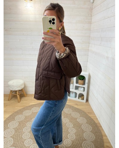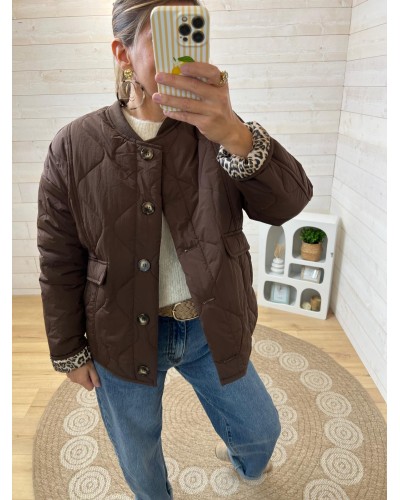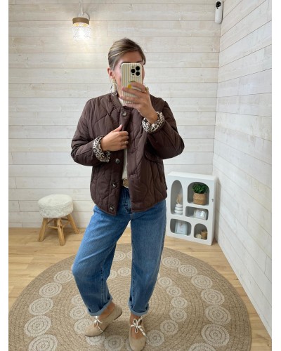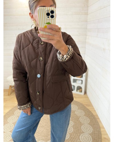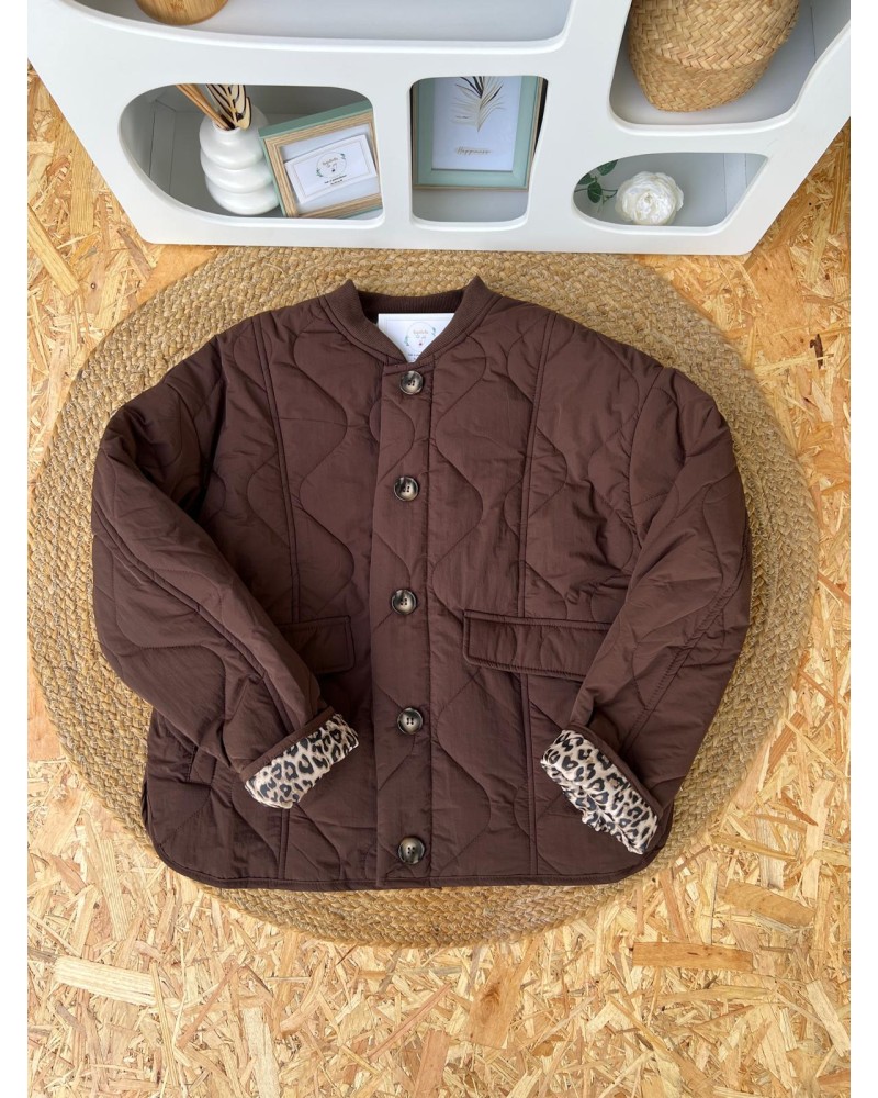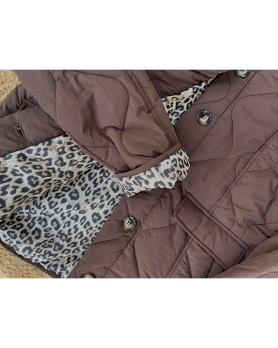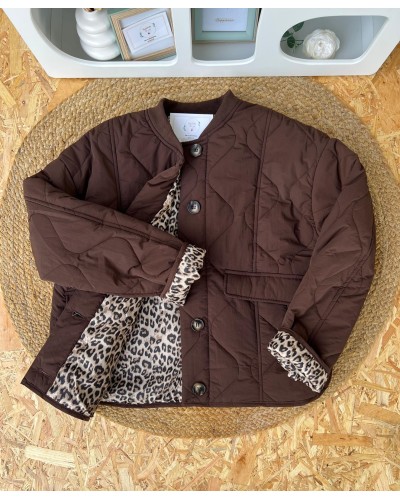 Veste ample matelassée chocolat avec revers imprimé Léopard