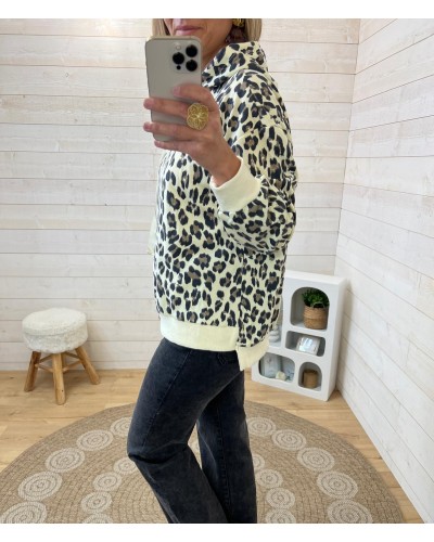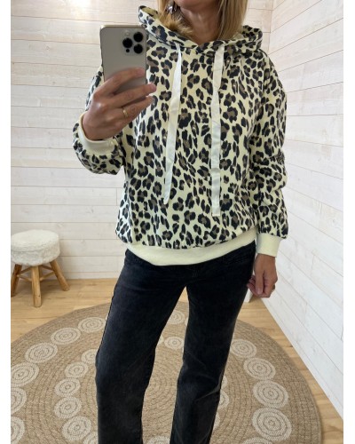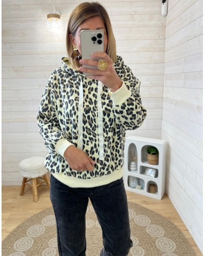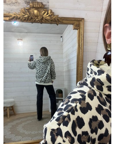 Sweat à capuche imprimé Léopard avec cordons en satin