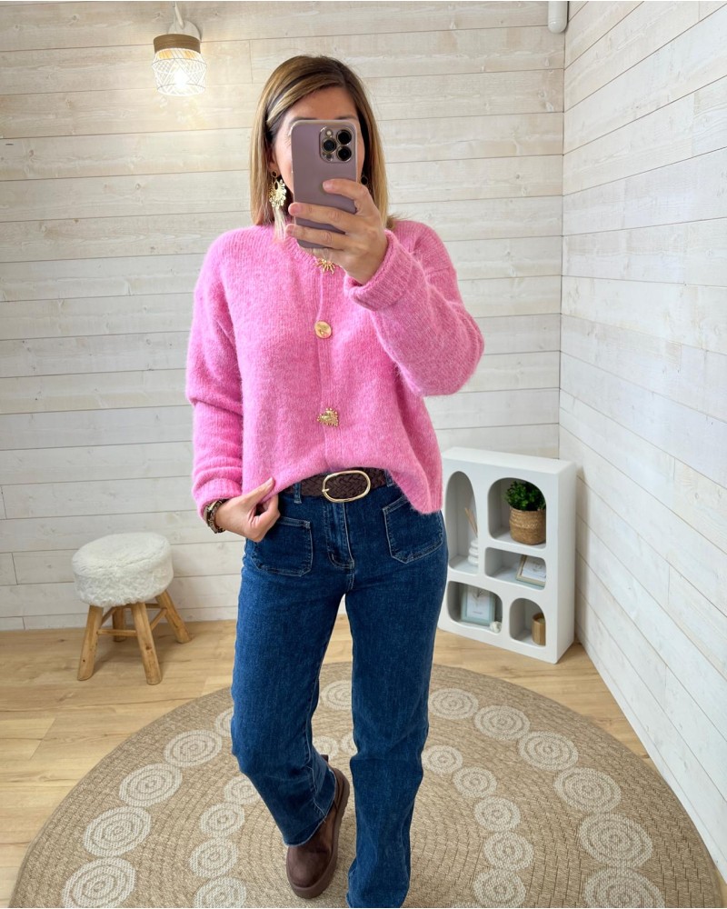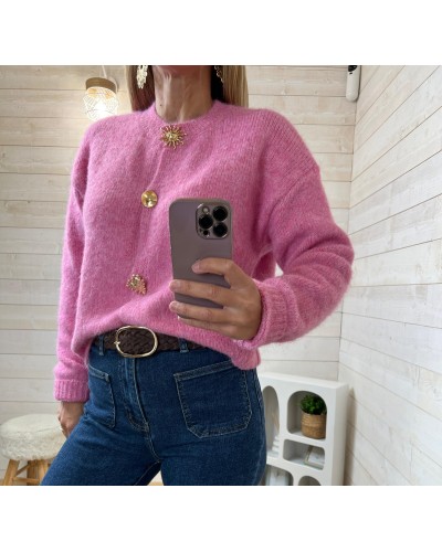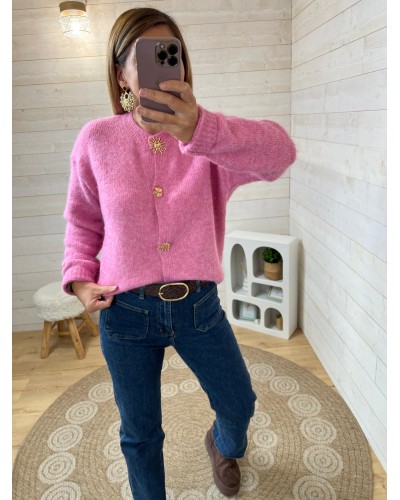 Bouton du haut se ferme par l'intérieur, il est recouvert d'une broche soleil dorée (amovible)