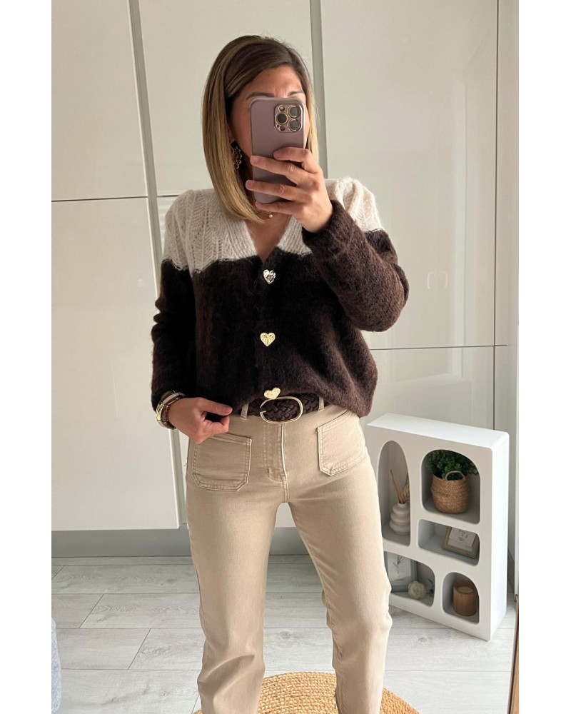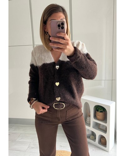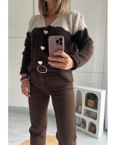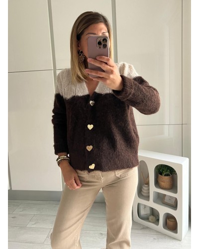 Gilet tout doux bicolore avec boutons coeurs