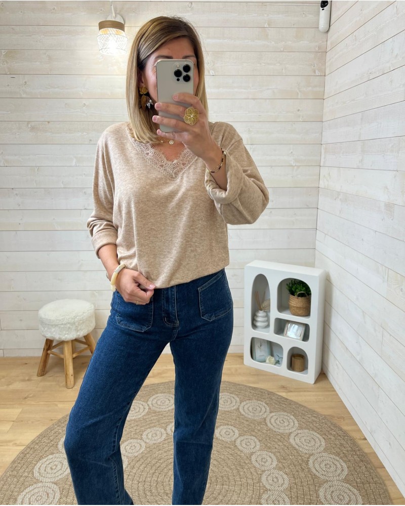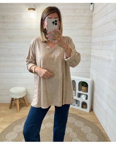 Top dentelle camel