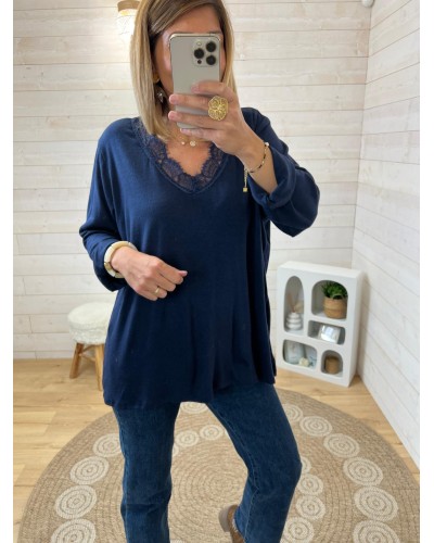 Top dentelle marine