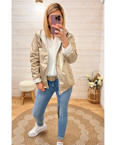 Imperméable réversible blanc et doré court